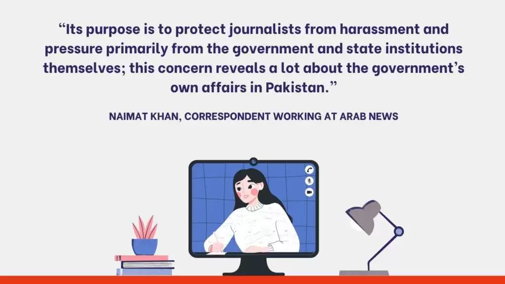 Naimat Khan, a correspondent working at Arab News, observes that the objections of the Sindh Governor of there being no checks and balances over the autonomous Commission, and the lack of audits to this effect, were rightly rubbished by the journalist fraternity: “Every autonomous body is properly audited and the same will be done in case of the Commission. The other concern regarding there being no checks and balances was against the very spirit of the law and Commision.” Sindh-based journalists such as Naimat believe that if the Commision were to be heavily regulated by the government, there would have been no need for its existence to begin with. “Its purpose is to protect journalists from harassment and pressure primarily from the government and state institutions themselves; this concern reveals a lot about the government’s own affairs in Pakistan.”