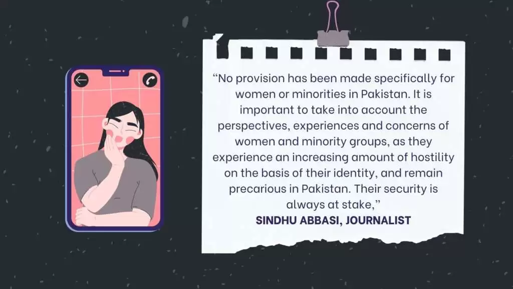 Like RSF and the FN, Sindhu also points out that the Act does not provide quotas for ensuring diversity in the Commission. “No provision has been made specifically for women or minorities in Pakistan. It is important to take into account the perspectives, experiences and concerns of women and minority groups, as they experience an increasing amount of hostility on the basis of their identity, and remain precarious in Pakistan. Their security is always at stake,” she adds.