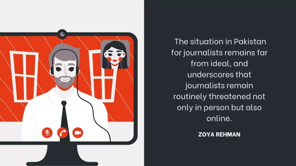 Journalism remains an increasingly precarious profession for women in Pakistan; female journalists face considerably more danger in the form of double censorship as compared to men in the field. The risky nature of the profession makes them susceptible to gender-based discrimination and violence. There have been several recent examples of women journalists experiencing the worst forms of coordinated online attacks and threats of harm, and they are constantly expected to tolerate patriarchal norms and open misogyny within and outside of newsrooms.