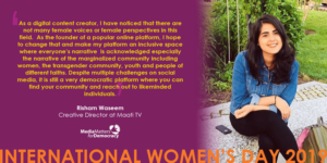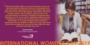 “Similarly, Samah Akhtar launched her Digital Media platform ProperGaanda to highlight under reported issues. Setting up her Digital Media company has been a “liberating” experience for her.