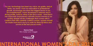 The internet was originally seen as the great equaliser – there was hope, that the digital landscape would be more open, inclusive and diverse. There was hope of equality, of equal representation and of empowerment of the marginalised. However, it has become apparent, that the digital world, has also inherited the biases and the challenges that have traditionally threatened the public experience of women. From invasion of privacy, harassment and blackmail, to cultural barriers restricting women’s access to tech, the dream of an inclusive, diverse and safe space remains elusive. However, progress is being made. This women’s day, Digital Rights Monitor reached out to some amazing Pakistani women to hear their perspectives on women’s digital experiences.